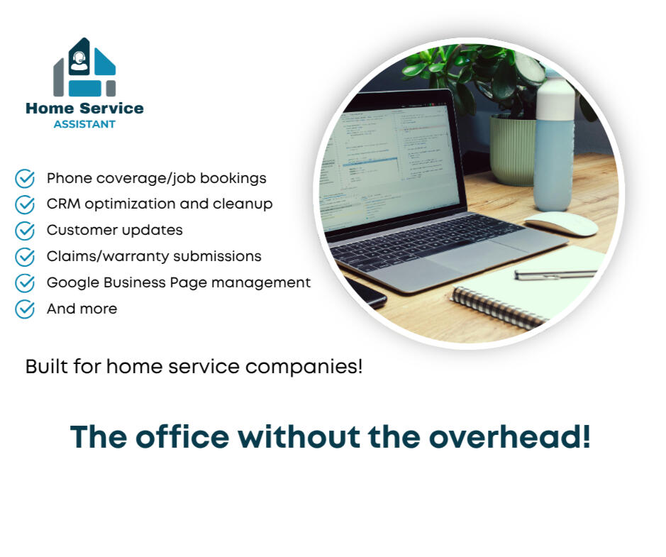 Built With Real Home Service ExperienceHome Service Assistant was created to support contractors with the office side of their business. With firsthand experience in the home service industry, we understand the challenges of managing calls, scheduling jobs, keeping the CRM organized, and staying on top of customer communication.Our goal is simple: take the administrative work off your plate so you can focus on running jobs, serving customers, and growing your business.